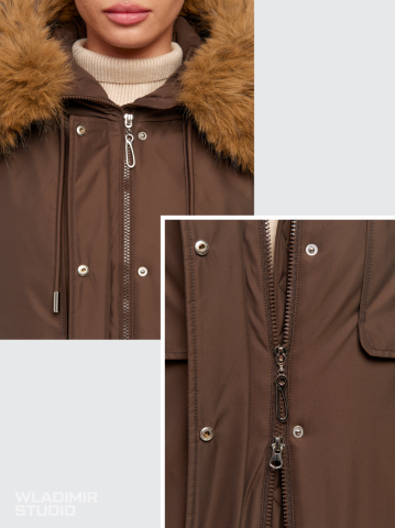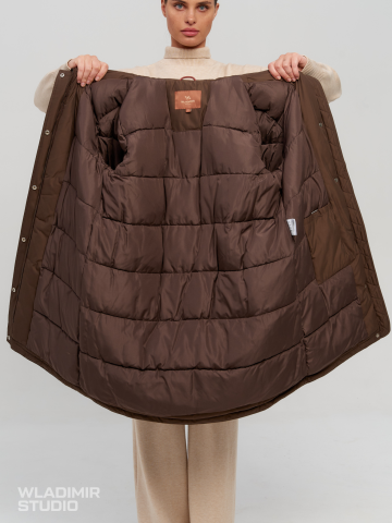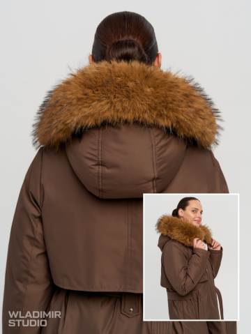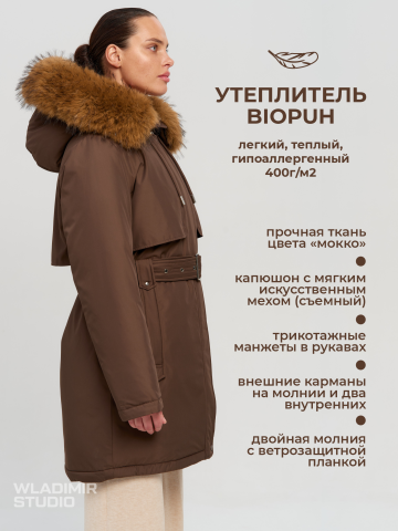 Элегантный женский зимний пуховик на биопухе шоколадного цвета — идеальное решение для холодного сезона. Лёгкий и тёплый наполнитель обеспечивает комфорт даже в сильные морозы. Несъёмный капюшон с объёмным воротником из искусственного меха защищает от ветра и добавляет образу стиля.